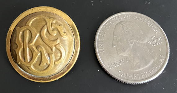 Domed button with entwined script letters "BSC". Reverse has "Goodwin's Pat. July 17, 1876"