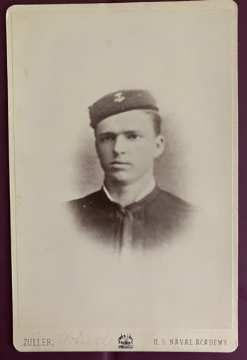 Appears to be a cabinet photograph of a photograph. Shows a sailor with pill box hat with fouled anchor insignia. Taken by F.M. Fuller, U.S. Naval Academy. Has "Whittle" in pencil on front. | SALE $10.00 | |