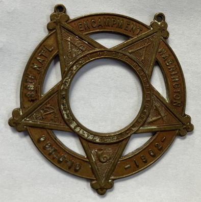 Fob only, "36th National Encampment Washington 1902 Oct. 6-10. Approximately 1-3/4" diameter. | SALE $20.00 |