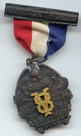 Circa 1900, bronze medal with gilt "8V." Has "WC" and "NGSNY". Hung from a red, white and blue ribbon. Pin bar has "Paratus Et Fidelis." Probably for Span. Am. War. | SALE $50.00 |