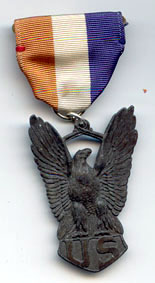 For the 1935 U.S. Army Maneuvers. Bronze eagle grasping a shield with "US". Marked on reverse "US Army Maneuvers August 17-31 1935." Red, white and blue ribbon. | SALE $ 38.00 |