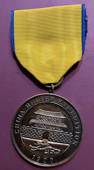 Belonged to William Gansz, a relative of my father JNJ, who served from 1896 to 1920 in the U.S. Navy. Has "China Relief Expedition 1900" on front with image of the "forbidden City" gate. Reverse has "United States Navy For Service" with eagle on an anchor. Unnumbered. | SALE $175.00 |