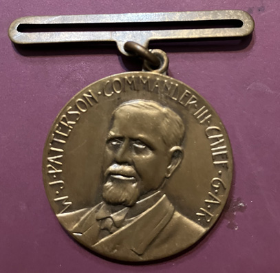 Missing it's ribbon, the drop has 'W.J. PAtterson- Commnader-in-Chief-G.A.R.". Reverse has maker's mark "Bastian Bros. Co. Rochester, N.Y." Medal is 1-3/10" in diameter. | Sale 420.00 |