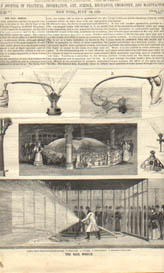 Title under engraving "The Ball Nozzle" "1 and 2. Experiments illustrating the principle. 3. Hose nozzle. 4. Fountain 5. Lawn Sprinkler. 6. Exhibition of fire nozzle." Vol. LXXIII.- No.2 New York July 13, 1895. Has article on "To the North Pole by Balloon." Pgs.17-32. | SALE $8.00 |