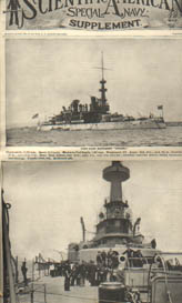Titles under photos on front page are "First Class 'Indiana'" and "'Indiana'- Forward Turret, Looking Aft from the Bow." Copyrighted 1898. 40 + pgs. & 6 pgs. advertisements. Packed with engravings, photos and drawings It has lots of battleships, cruisers. Picture of Coast Defense Monitor 'Amphitrite'- the Forward Pair of 10-inch Guns., U.S. Armored Coast Defense Vessel 'Monterey', Dynamite Gunboat 'Vesuvius', Torpedo Boat 'Porter', Submarine Torpedo Boat 'Holland", Second-Class Battleship 'Maine' and more. Stapled binding. | SALE $8.00 |