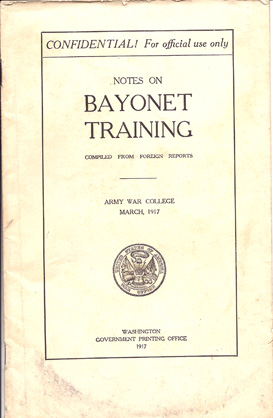"Notes on Bayonet Training Compiled from Foreign Reports- Army War College March 1917- Washington, Government Printing Office". 34 pages. Major General H.L. Scott, Chief of Staff. Official: H.P. McCain, The Adjutant General. | SALE $12.00 |