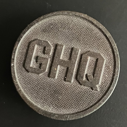 Bronze, "GHQ", screwpos t and nut, two needle points. See Scipio pg. 139, plate 24, GHQ. Abolished in 1921. | SALE $60.00 | |
