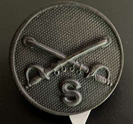 Bronze, with "S" below crossed sabers. Has screwpost and nut as well as two needlepoints. See Scipio Plate 7, fig. 10. | SALE $35.00 | |