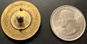 Flaming bomb on front. Has screwpost and nut and two needlepoints on back. Approximately 1" diamter. | SALE $24.00 | |