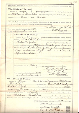 "The State of Texas County of Hays Personally appeared before me, the undersigned authority this day William Mahler, who, afer being sworn, states that he has taken up at his residence on stray hors....Sworn to and subscribed before me, this 22nd day of December A.D. 1876..." | SALE $15.00 |