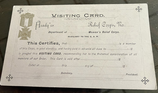 Women's Relief Corps Visiting Card |