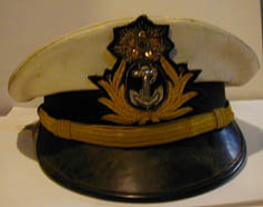 With embroidered gold and silver insignia and gold chin strap. Marked "Marinha Do Brazil." (Navy of Brazil) Shows age | S$30.00 |