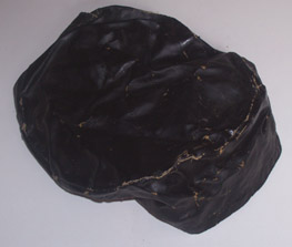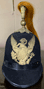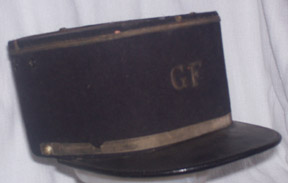 Dark blue wool with silver piping and chin strap, flaming bomb side buttons and a large "G.F. " on the front. Minor mothing. | S $75.00 |