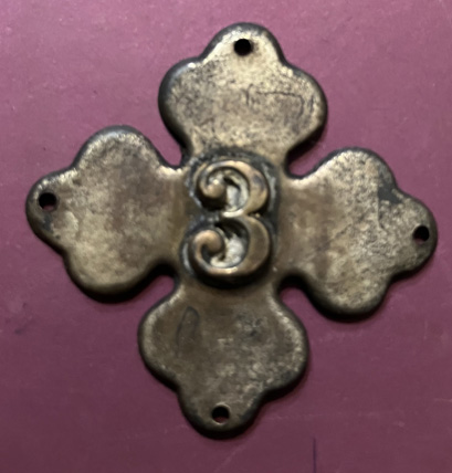 18th Corps Badge with "3" superimposed (3rd Division). Has four small holes, one on each lobe, for sewing to a hat. Approximately 1-3/5" x 1-3/5" overall. | SALE $150.00 |
