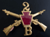 Gilt crossed rifles with red enameled keystone in the center, "2" above and "M" below. Laframboise Vol. I pg. 153, fig. 49. Screwpost back. See note above. | SALE $ 18.00 | |
