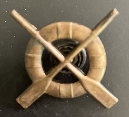 Bronze life ring with crossed oars. Has screwpost and nut on back. Approximately 1" x 1" overall. This insignia was for enlisted personnel that were qualified to operate surf boats in heavy surf conditions. | SALE $65.00 |