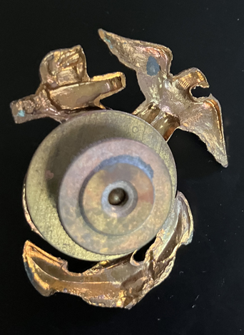 Gold eagle, globe and anchor insignia with screw post and nut. Approximately 1-1/2" x 1-1/2" overall.