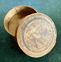 Label has "Excellent Specific Dentifrice for the Tooth & Gums by Greenwood Dentist". Approximately 1-3/4" diameter by 1" high with lid on it. Shaker style box and lid with pins to hold the wood strips in place. |