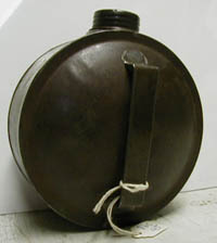 Confederate "Tin" Canteen | A small drum type canteen, with swelled front. It is approx. 2½" wide, 4½" diam. with a single 2½" belt slide on back and a screw on cap spout. Similar to many in Chap. II of Civil War Canteens. | SALE $100.00 | |