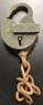 Antique brass padlock and chain, missing key. dad removed this from a caisson ammunition box from Bannerman's Island. | SALE $60.00 | |