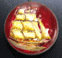 Glass rosette for horse bridge with glowing ruby red background and tall ship iamge. Brass frame and back. Approx. 1-3/4" diam. x 5/8" height. | SALE $30.00 | |