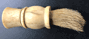Wood handle and vulcanized handle shaving brush with horsehair bristles. (Horse hair bristles have a wave to them). Boar bristles(?) set in vulcanized rubber (gutta purcha). Marked "Strong Hold Bristles Set in Vulcanized Rubber." Handle is approx. 3-1/4" long (includes vulcanize rubber band). | SALE $20.00 | |