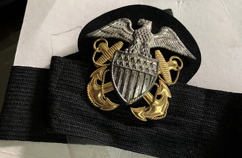 Full size badge and black mohair band. Has two screwposts with nuts. Eagle/shield marked "Sterling" and "Panacraft". Approximately 2-1/4" in height, 2-1/2" wide. |