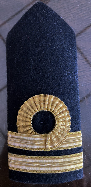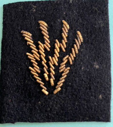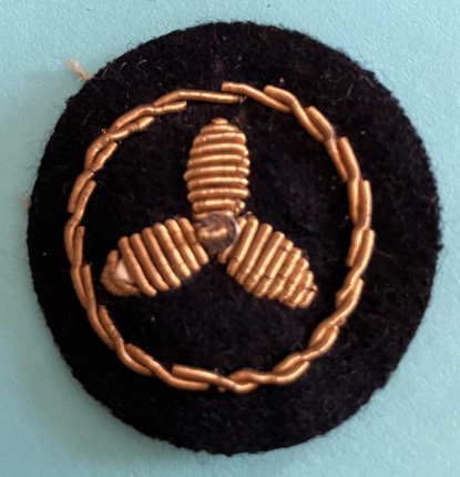 Gold bullion on wool field, stylized radio waves or sparks. Issued to sailors training to become a radioman. Approximately 1-3/4" square. |