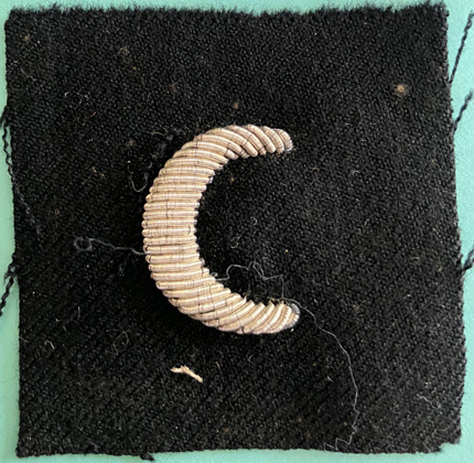 Silver bullion on wool field, a crescent moon. Patch is approximately 2" square. |