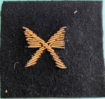 Gold bullion on blackf ield, crossed feathered quills.Patch is approximately 2" square. |