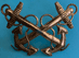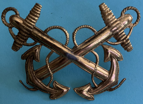 Gold metal crossed fouled anchors. Has screw post, no nut, needlepoints. Approximately 2"w x 1-1/2" h overall. |