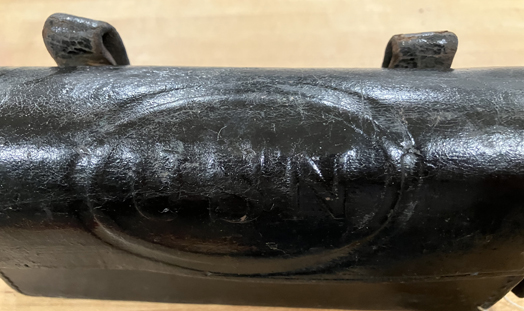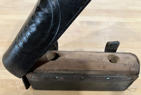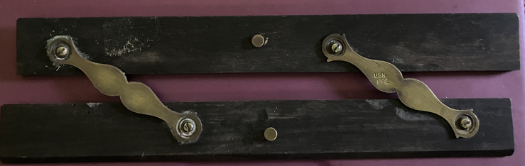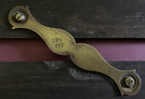 Brass and wood (ebony), approximately 9" x 2". Has "USN 1882" stamped on one brass hinge. |