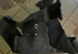 Mohair and leather cap band, black type. Badge removed, ends frayed. |
