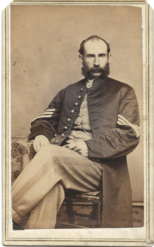 Seated studio portrait of soldier in frock coat with sergeant stripes (cavalry or artillery). Unidentified. | SALE $50.00 | |
