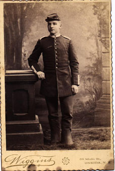 Shows a private in his dress uniform with kepie. Has crossed rifle with "12" on kepie. Has some type of bar pinned to front of uniform. Taken by Wiggins of 58 Main St., Oneida, N.Y. | S $24.00 |