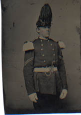 He wears the dress uniform, shako with drooping feather plume and belt buckle with large "D". 2¼"x 3½" in size. | S $75.00 | |