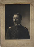 Identified from a group photo of Ohio Wesleyan University students that came with this photo. 5¼"x 7¼" overall, taken by "John M. Kuhn St. Paul, Minn." He wears the undress uniform. Water stains to board backing but does not affect the image. | SALE $12.00 | |