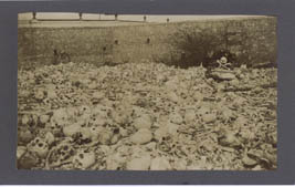 Identified as "Boneyard Colon Cemetery Havana" Cuba. Shows hundreds of skulls and bones of Spanish soldiers. Approx. 4½" x 7½" overall. Macabre. | SALE $12.00 each |