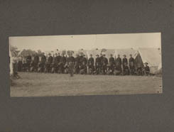 Shows a company of 2nd Infantry, armed with their rifles, lined up in front of their tents. Taken by "E.J Stone of Dexter, Mich." 10½" x 12½" overall. Some dirt marks to image. | SALE $14.00 | |
