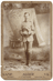 He wears the tan duck uniform, campaign hat, gauntlets, cross belts and holds his cavalry saber. Approximately 4-1/5" x 6-1/2" overall. Faint imprint "S.P. Means Geneva, O." | SALE $75.00 |