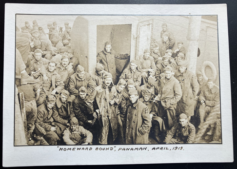 Labeled '"Homeward Bound", Panaman, April 1919"'. Approximately 5x7" overall. Shows soldiers on deck of the ship. | S$15.00 |