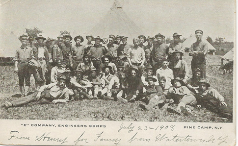 Group photo in the field of "E" Compnay, Engineer Corps. Labeled in ink " From Henry for Fanny from Watertown, N.Y. July 23-1908". Divided back, unmarked on back. | S$8.00 |