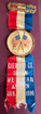 For the sons of Civil War Veterans, a sort of junior GAR. Bronze top bar with "21st Annual Encampment Commandery-in-Chief Sons of Veterans U.S.A. Washington, D.C. Oct. 7-8-9-10, 1902" . Yellow silk ribbon, printed in gold with S of V coat of arms and a bronze drop in the shape of the U.S. Capitol building. Approx. 4 1/4" in length. | SALE $ 22.00 |