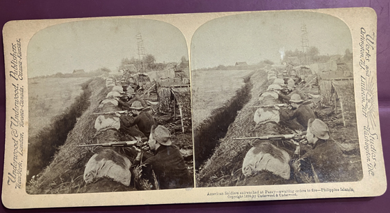 Titled "American Soldiers entrenched at Pasay- awaiting orders to fire- Philippine Islands." Copyright 1899 by Underwood & Underwood. | SALE $10.00 | |
