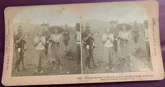 Titled "13565. Filipino women 'scared to death' brought into the American camp by scouts, Antipolo, P.I." Copyright by B.W. Kilburn, Littleton, N.H. Buff mount. | SALE $10.00 | |