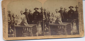 Shows "The Mascot of the Rough Riders-to be Loosed on the Spaniards." Shows seven troopers (one wears a medal) with a wildcat sitting on top of his cage. | S $18.00 | |