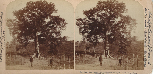 "The "Peace" Tree, where Lieut. Hobson was exchanged,- near Santiago, Cuba. Copyright 1899 by Strohmeyer & Wyman" Sold only by Underwood & Underwood. | S$10.00 | |