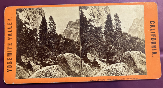Titled"Canon of South Dome Clouds Rest in the Distance." "Yosemite Valley. California." Orange mount. |