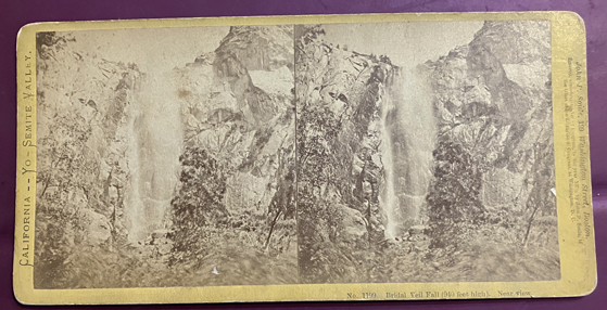 Titled "7343- Yosemite Falls, 2634 feet high. From the Cabin." "American Views. Yosemite Valley, Cal." Orange mount. "Published by E. & H.T. Anthony & Co.,....N.Y." |