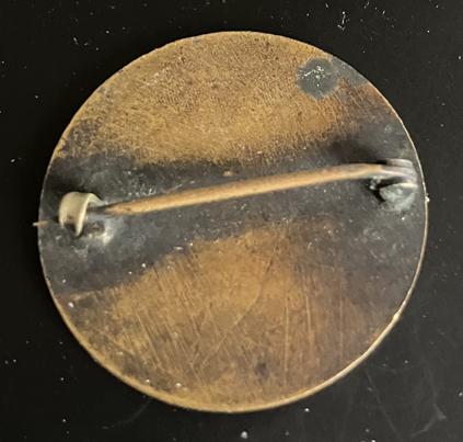 Flaming bomb on front. Has screwpost and nut and two needlepoints on back. Approximately 1" diamter. | SALE $24.00 | |